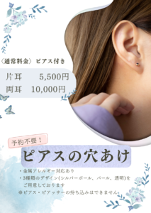本日より、ピアスの穴あけを導入します。