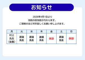 4月から担当医変更のお知らせ