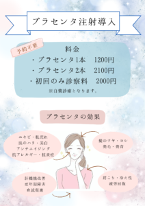 本日よりプラセンタ注射を導入します。